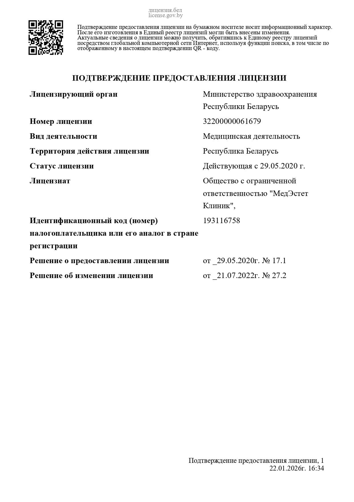 Дата принятия решения о предоставлении лицензии: 29.05.2020